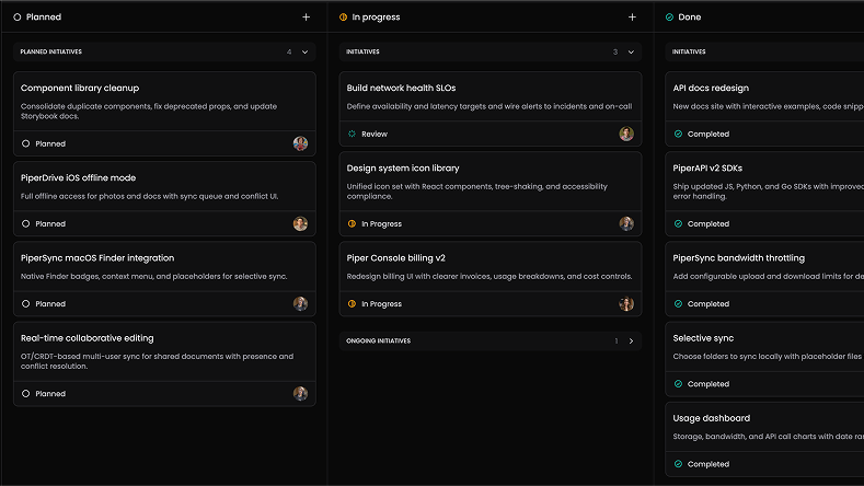 See open, planned, blocked, and in-review work in one place instead of stitching updates from separate boards.